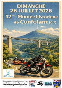 « 12ème Montée historique de Confolant : les années passent et nous toujours avons un grand plaisir à vous proposer une journée plaisir dans un cadre juste magnifique !!! Venez donc participer à cette douzième édition… Venez rencontrer des passionnés comme vous qui amènent des machines rares que l’on voit rouler le long des 1,820 km de ce tracé mythique. Tout pour ravir les yeux et les oreilles dans une ambiance amicale !!! »