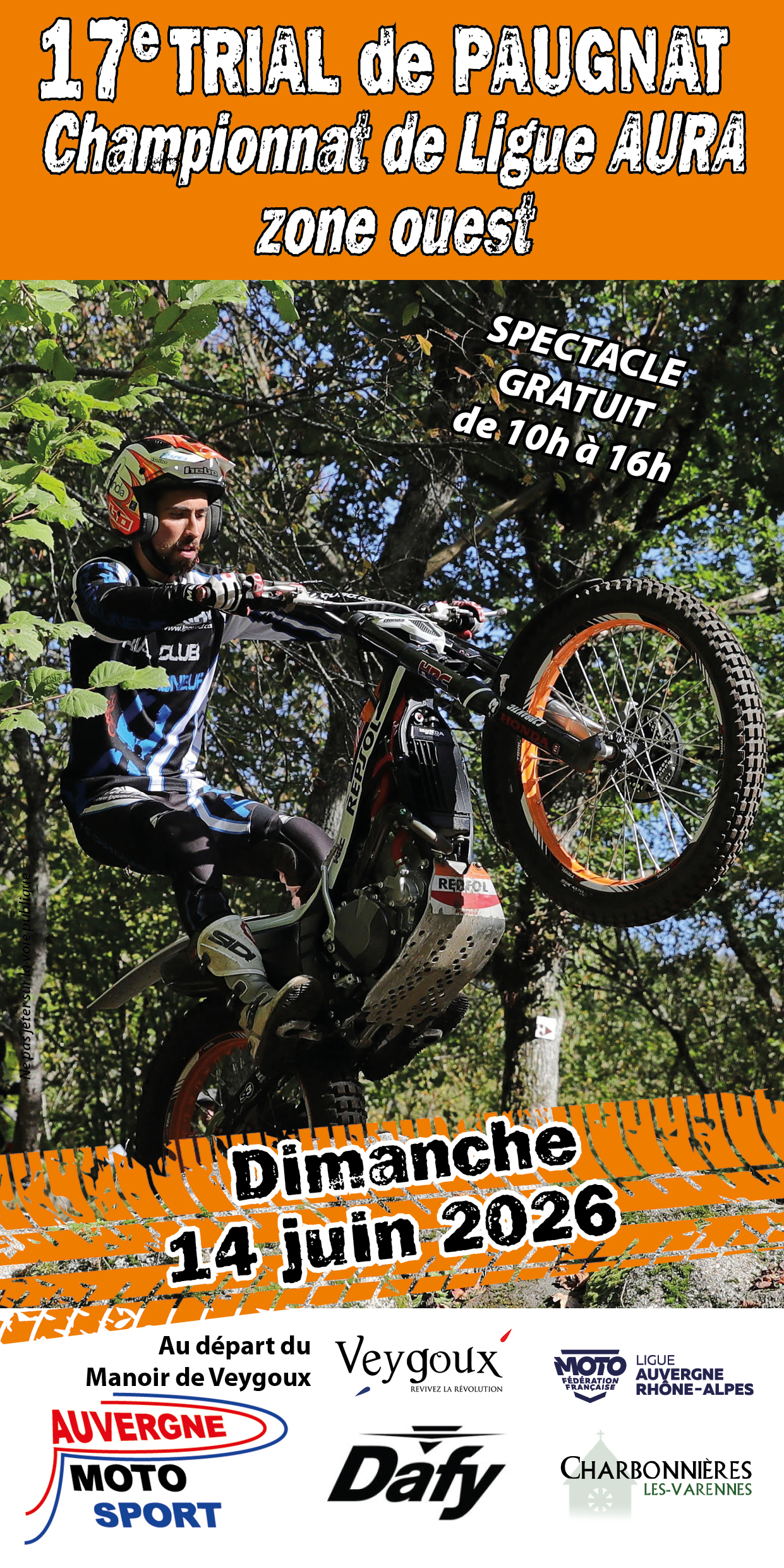La 17ème édition de notre TRIAL de PAUGNAT (63) commune de CHARBONNIERES LES VARENNES comptant pour le championnat de ligue AURA.
